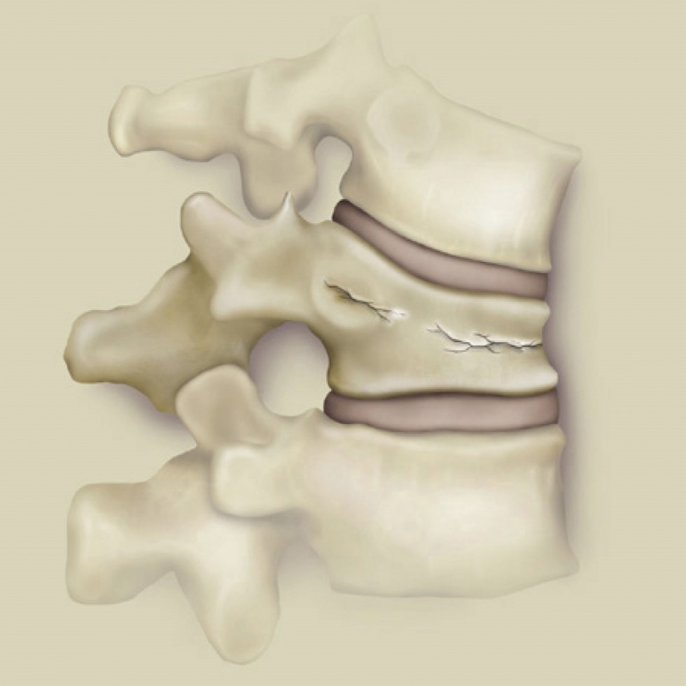 Vertebral compression fractures are most often caused by osteoporosis, which is the loss of calcium from bones resulting in weakened bone structure. Osteoporosis increases the risk of fracture of the vertebral body (the thick block of bone at the front of the vertebrae). Osteoporosis occurs more often in women then men, with women accounting for 80 percent of all osteoporosis cases. Vertebral compression fractures can be also be caused by cancer, arthritis, degenerative disc diseases or trauma to the back, such as a fall or car accident.